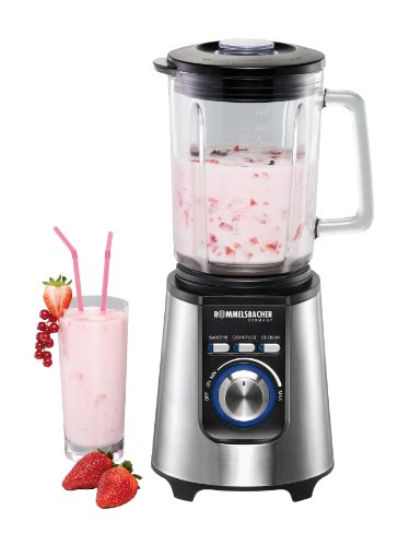 Description : Der Rommelsbacher Standmixer MX 850 mixt und zerkleinert mit einer Leistung von 850 Watt Fruchstaftgetränke, Smoothies, Cocktails, Obst und Gemüse oder Eis dank seines vierflügeligen Edelstahlmessers. Der hochwertige Glaskrug fasst 1,8 Liter, durch die praktische Deckelöffnung können die Zutaten nach und nach eingefüllt werden, die Skalierung hilft beim Abmessen und durch die stufenlose Drehzahlregulierung können flexibel Obst und Früchte verarbeiten werden. Das übersichtliche, beleuchtete Bedienfeld und ein integriertes Sicherheitssystem gegen unabsichtliche Benutzung sorgen zudem für angenehm einfaches Handling und Sicherheit im Betrieb.